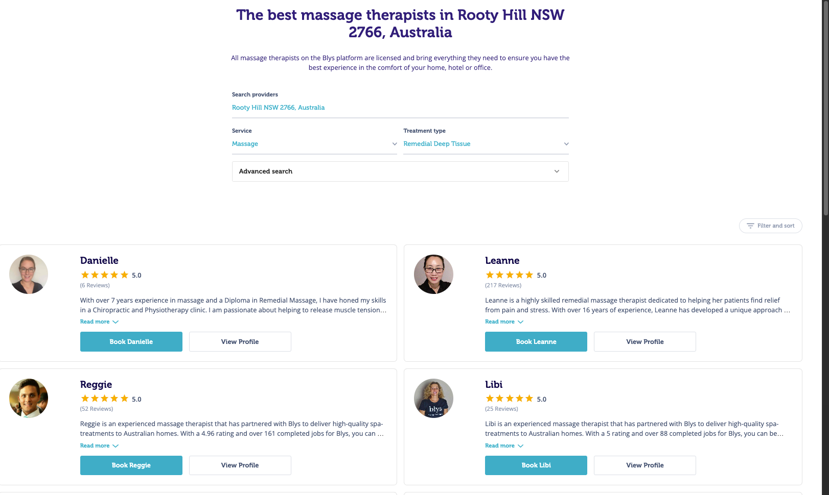 Browse through the list of therapists and select the one that best meets your needs. You can then proceed to request a booking with the chosen therapist.